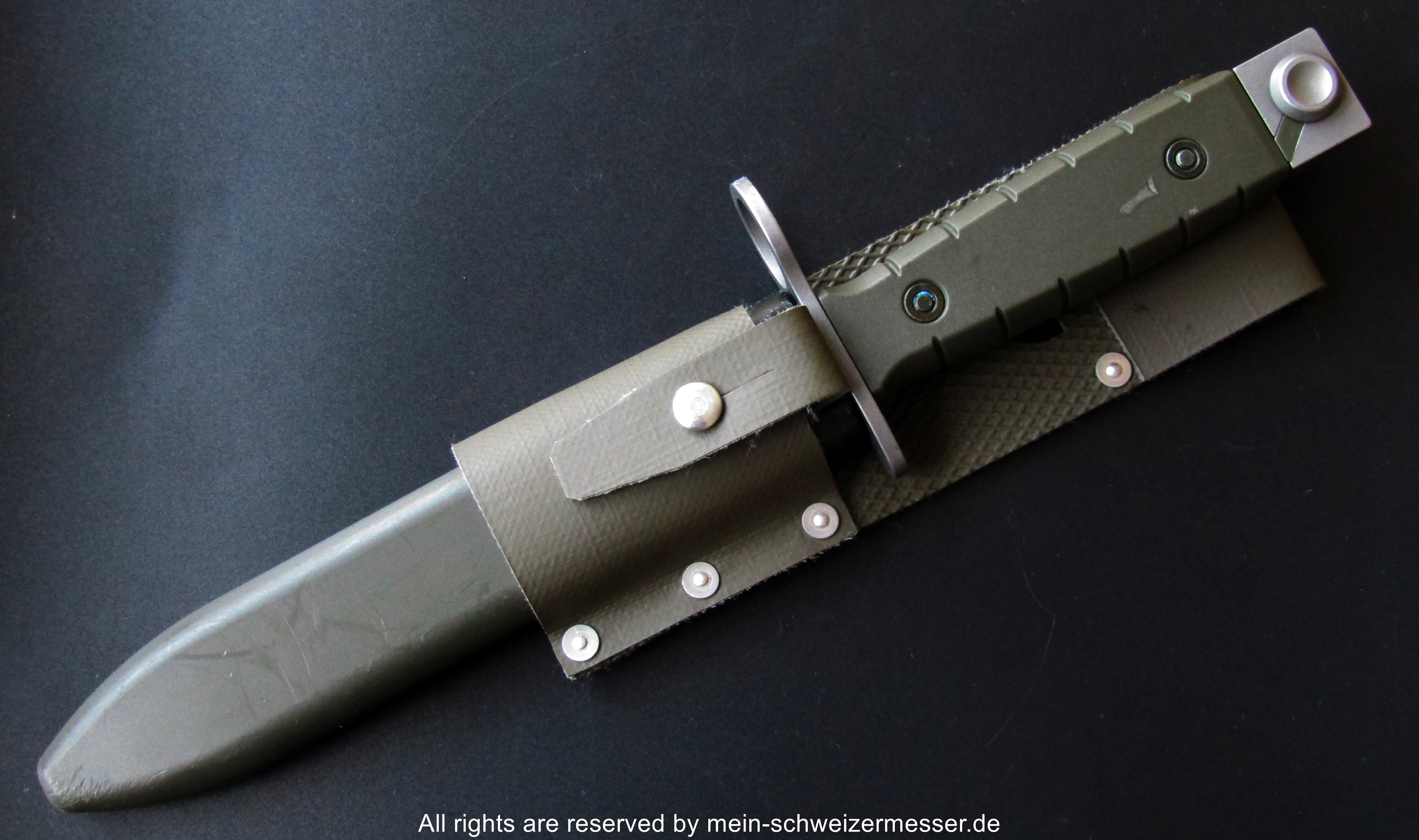 Modell: Schweizer Armee Bajonett, Modell Stgw 90, komplett mit Scheide und Bajonett-Halterung " Frosch "